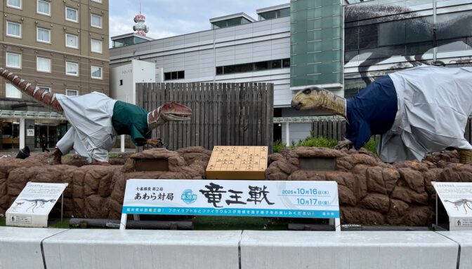 福井といえば恐竜王国。そこに将棋の竜王戦が重なり、ここでしか見られない特別なコラボになっています😊